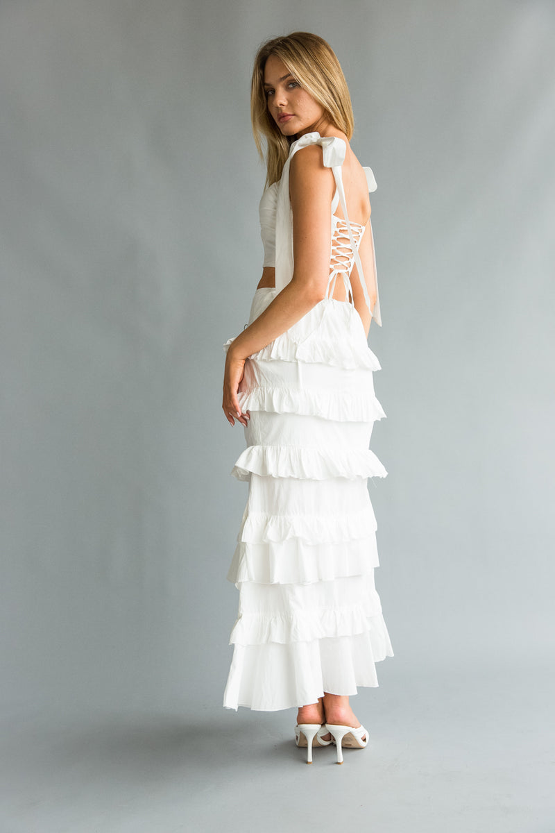 Dawn Bow Strap Bustier Top + Tiered Ruffle Skirt Set