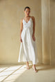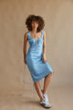 Lucinda Halter V-Neck Open Back Satin Midi Dress