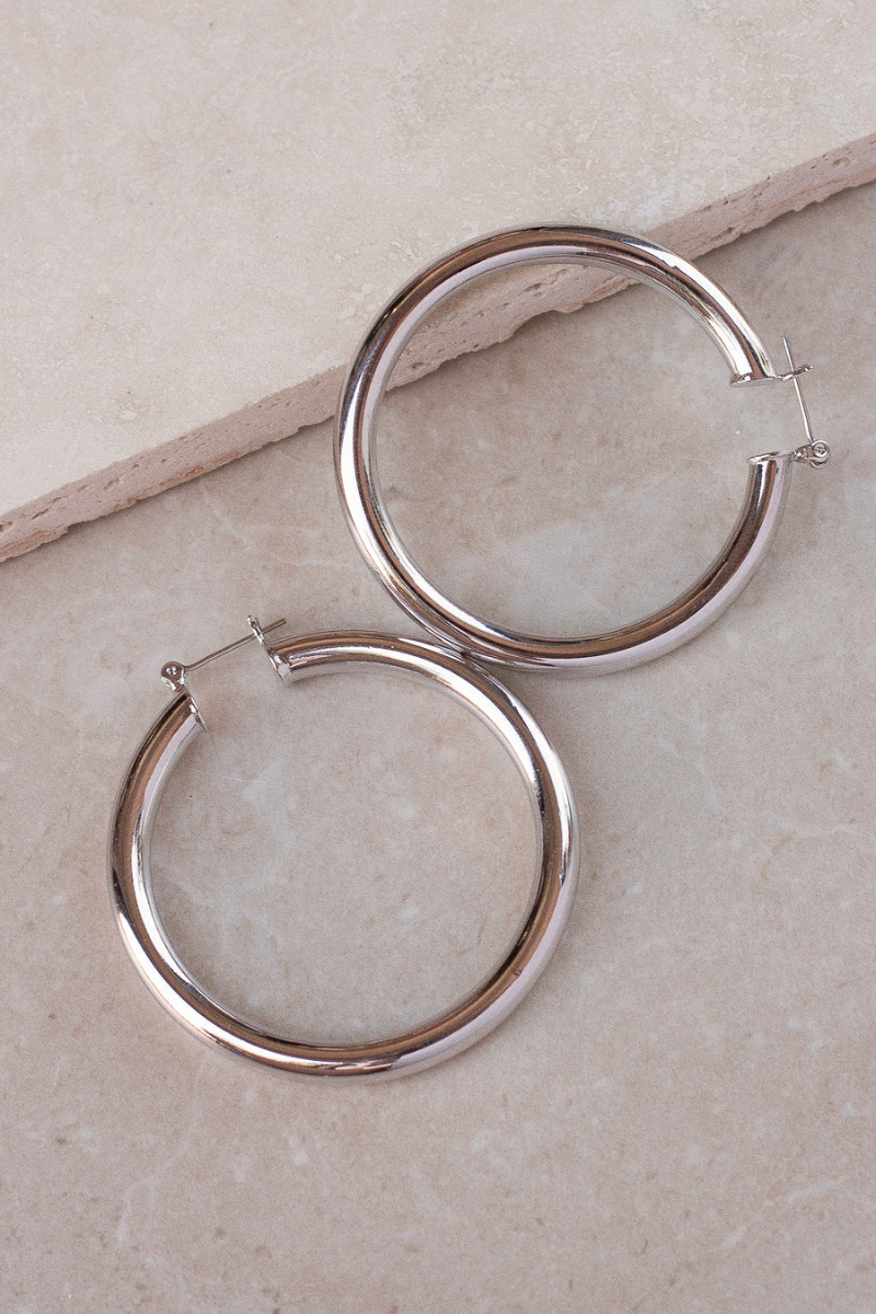 The Amalfi Tube Hoops are a classic pair of large hollow and lightweight metal earrings that are perfect for everyday wear!