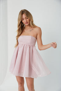 Be the life of the party in the Bella Strapless Babydoll Mini Dress! This gorgeous mini dress is fully lined with an organza overlay. Pair with some cowboy boots for a trendy take on a classic style!