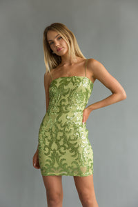 Fall in love with the Sylvie Sequin Bodycon Mini Dress! This sparkling dress features a flattering bodycon silhouette, a straight across neckline, and a mini length. Pair with some cute heels for the perfect evening look!
