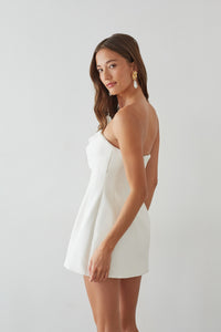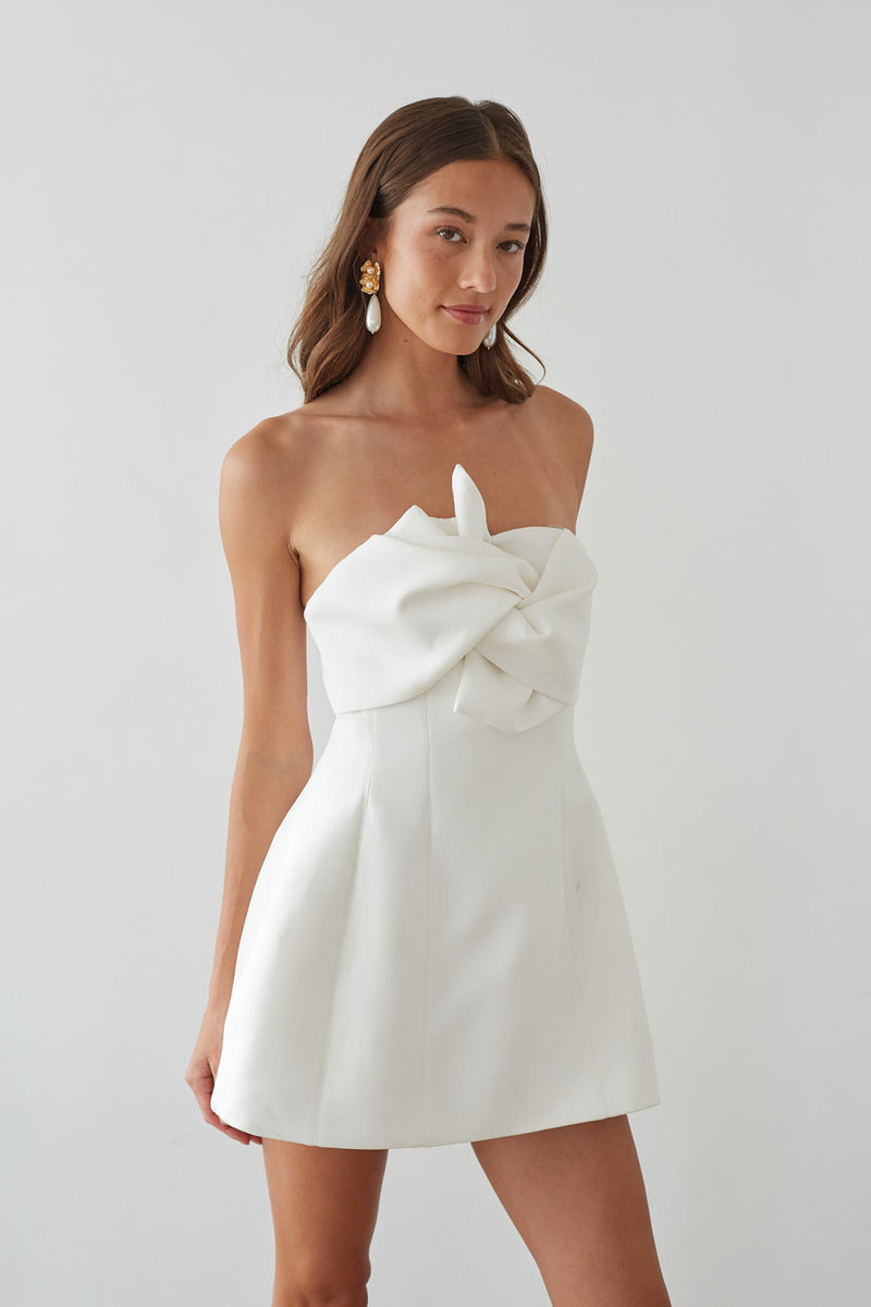 Be strikingly unique in the all new Alix Strapless Twist Front Bubble Mini Dress. This white mini dress features a strapless neckline, twist front detail, and flattering bubble fit and flare silhouette. Available in Pure White; style with a pair of chic heels to complete the look. If you love the Alix you'll love the Zola One Shoulder Mini Dress!