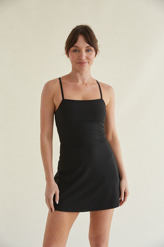 pink-image | baby pink smoothing mini tennis dress– adjustable straps and built-in shorts