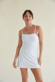 White Mini Tennis Dress- adjustable straps and built in shorts with pockets and double lined