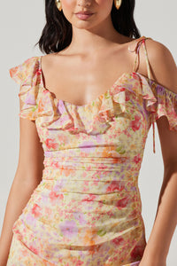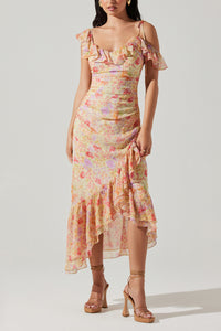 ASTR Luvita Floral Ruffle Chiffon Midi Dress