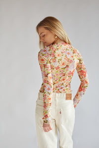 Summer Floral Mesh Long Sleeve Top