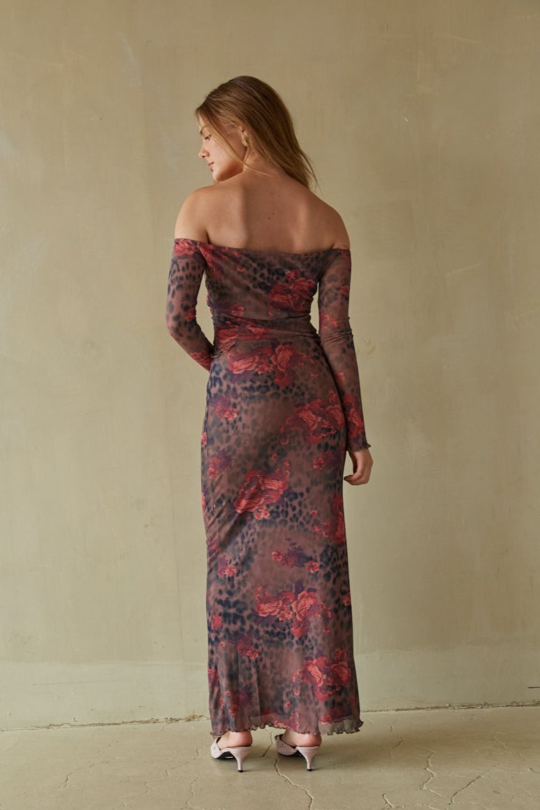 Serena Floral Leopard Mesh Off the Shoulder Top