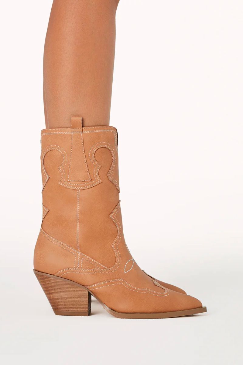 Adriel by Billini is a western ankle boot. Statement-maker Adriel is the perfect western boot for your next festival or party occasion, with its distinct western-inspired cut-outs & stitching! Featuring mid stacked block heel, closed pointed toe, high cut ankle boot upper, and statement embroidery & cut-out detailing. Available in Black-Ivory and Camel Casual. Pair these boots with a cute mini dress for the perfect festival fit!