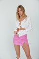 Keep it flirty and fun in the Aubree Lace Up Knit Top! This ribbed knit top features a full length lace up detail, split cuff long sleeves, and a pointed collar. Available in brown. Pair with the Aliyah Pleated Micro Mini Skirt to complete the look!