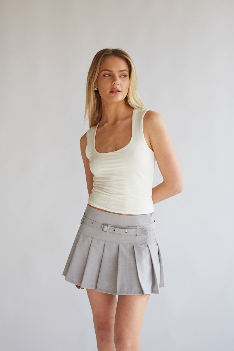 Freshen up your wardrobe with the Charis Square Neck Crop Top! This chic top is made of a soft knit fabric and features a square neckline, closed back, fitted silhouette, and a cropped hem. Pair with the Sloan Woven Pleated Mini Skirt to complete the look!
