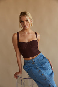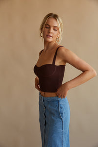 The Fiore Ribbed Bustier Crop Top is going to be in heavy rotation this season! This corset-style sweater top features a cropped fit, scoop neckline, and thin shoulder straps.