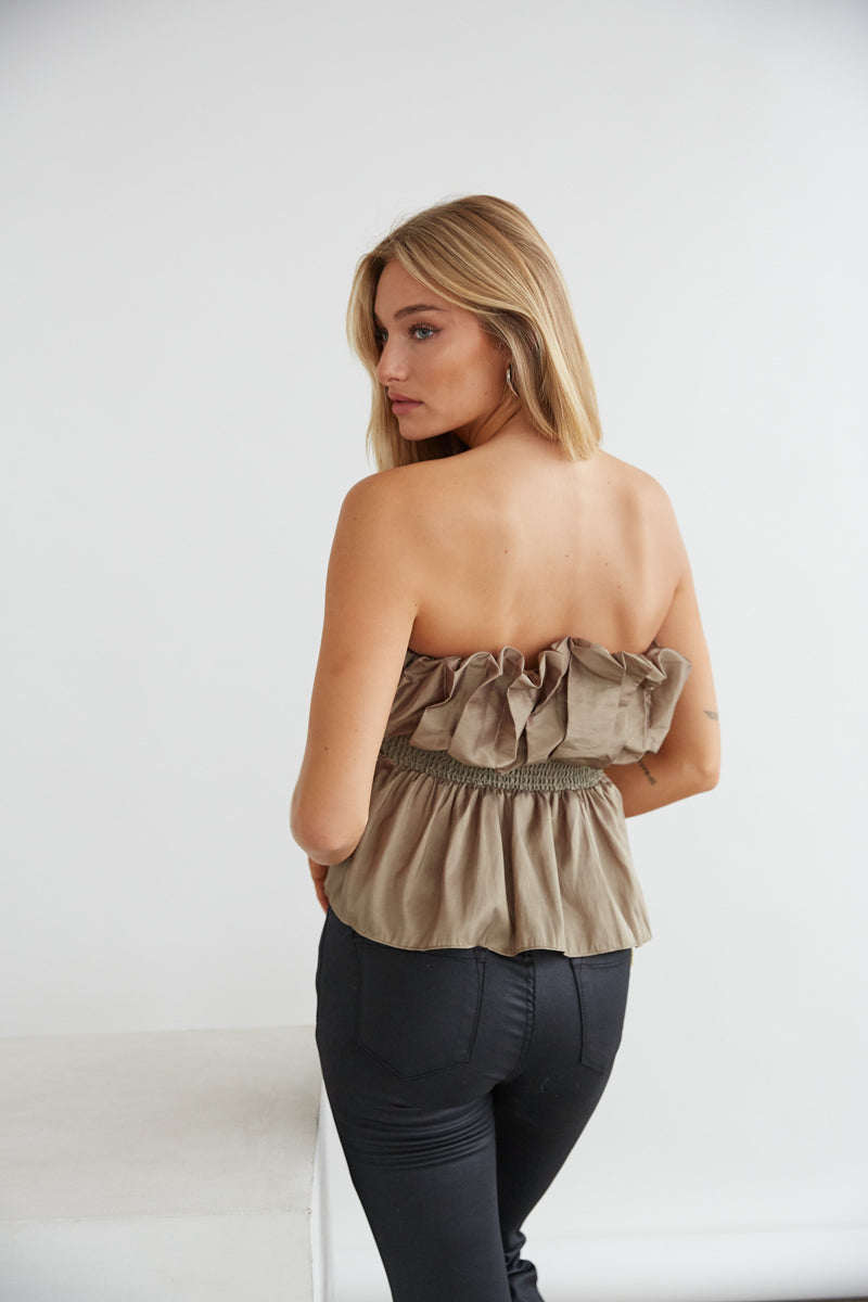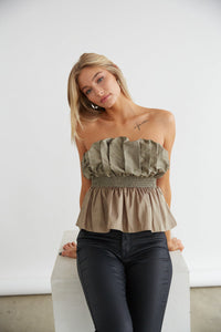 You need to add this peplum top to your closet! The Gracie Strapless Taffeta Peplum Top features a smocked waist, elastic band, and is pleated throughout!